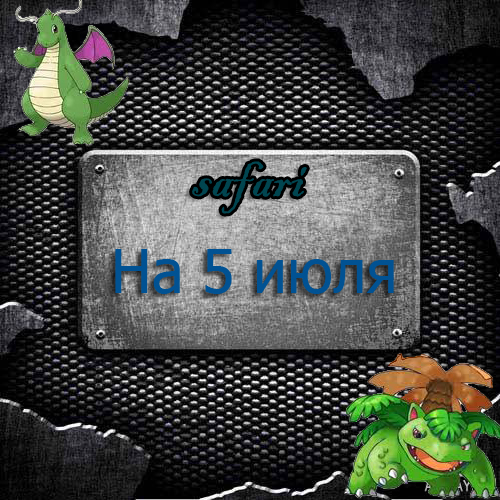 С наступлением 5 Июля Ник дал старт на начало сафари и просто все участнкии были изумлены , Ведь Никита разрешил ловить ЛЮБЫХ покемонов , и убрав временные рамки самой ловли до следующего дня Ник ушел на гражданку ! Ну дак вот . Участников было меньше самих заявок а именно Четверо . Маска-Даркус , Noobas , WeZzee и Alert .